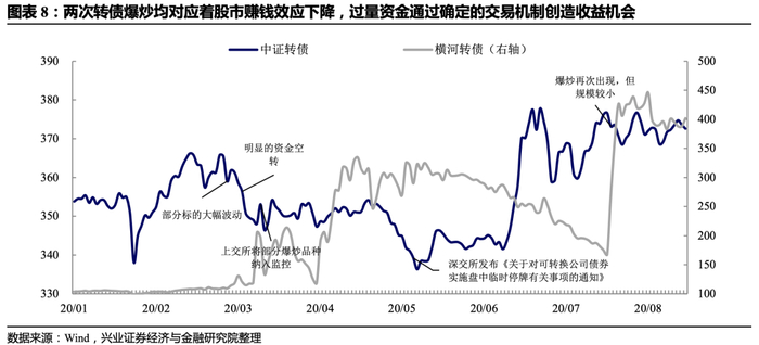 今年3月中旬,8月初出现的转债爆炒本质就是利用资金规模和交易制度的确定性赚钱(《略显无奈的光环_0315》、《炒作重现、高价调整与低位补涨的逻辑_0816》对此已有相似阐述),这与股市中的打板是类似道理,毕竟“单点击破”无需考虑市场整体情况和基本面情况。从天山生物被连续点名,但复牌后依然上涨的情况来看,以这种模式参与市场的资金规模并不小,而且依然认为短期投机有利可图。