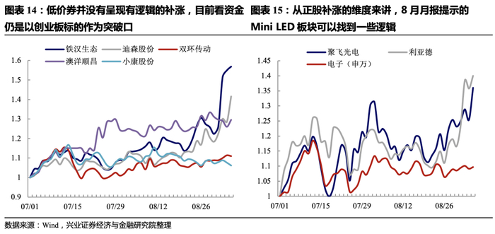 无论是股市还是转债市场,部分低价/低估值品种近期的收益可能更多来自资金行为,而非基本面改善逻辑下的补涨,因此择券并不容易,如希望参与还需以配合消息面的创业板标的博弈为主,这里不做推荐。《弱增量与渐修复——兼转债8月展望及7月回顾_0802》中提到的Mini LED可能是存在基本面加持的补涨方向,其具有正股估值底、中报利空释放、未来空间较大和大厂消息催化等特征。
