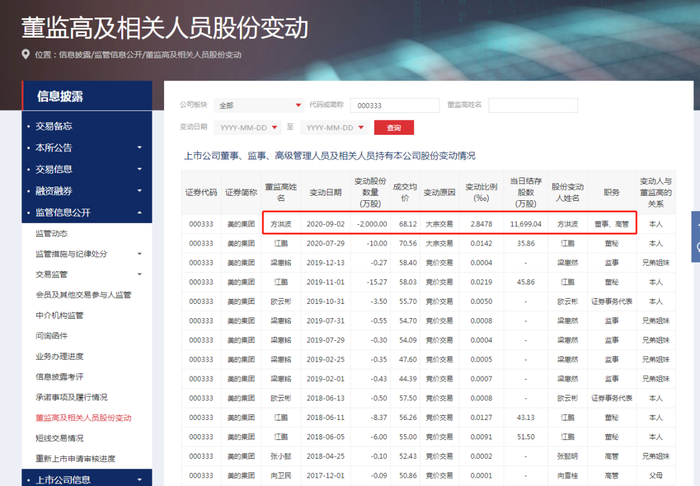 从深交所披露的信息可以看到,这也是方洪波上任美的集团董事长以来,首次减持股票。