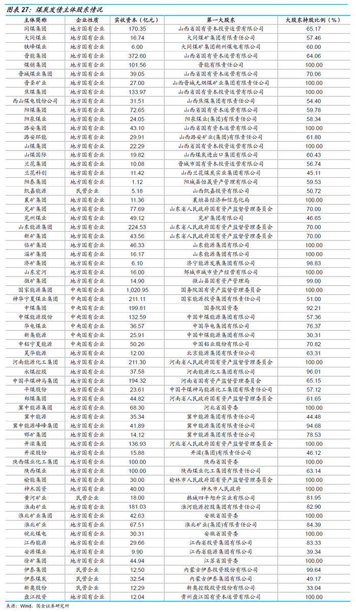 煤炭企业具有一定的公益属性,股东背景及其重要性决定了煤企所能获得的支持力度。从企业背景来看,多数煤企均为地方国企,实际控制人为省级国资委,市级及县级企业有兰花集团、阳泰集团、襄矿集团、济矿集团、山东宏河、微矿集团、榆能集团及神木国资,民营企业有凯嘉能源、黄河矿业、伊泰集团及新奥股份,股东实力相对偏弱。