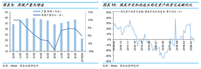 从煤炭终端需求来看,上半年,基建、地产投资增速表现较为亮眼。4月基建和地产单月投资增速均转正,5月投资增速分别达到10.9%和8.09%,基建托底经济落实,上半年疫情导致财政支出进度偏慢,在注重实效的政策要求下财政支出已明显提速,叠加8月起地方专项债发行放量,后续基建将重回较高增速。