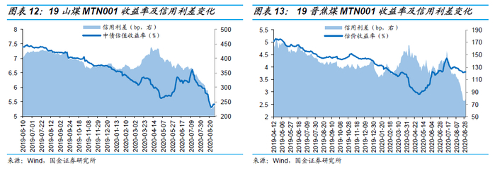 煤企整合重组有助于减少区域内竞争、优化资源配置,相关主体可获得更强的外部支持力度,尤其是对于其中相对较弱的主体来说,获利更加明显,以山煤集团和焦煤集团为例,4月,山煤集团发布公告焦煤集团对山煤集团进行吸收合并之后,山煤集团债券信用利差出现大幅收窄,而焦煤集团债券信用利差在5-7月则有所走阔。