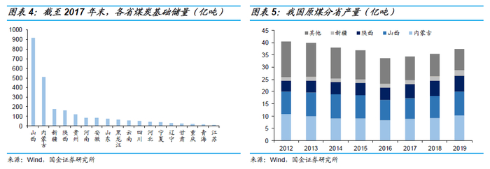 我国煤炭储量丰富,截止2018年底,我国煤炭探明储量占世界总探明储量的13.2%,位列第四。我国煤炭资源分布整体上呈现“西多东少、北多南少”的特点,2017年底,山西、内蒙古煤炭基础储量[2]分别为917.3亿吨、507.63亿吨,占比56.95%。