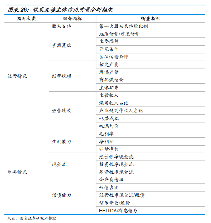 最后,我们对煤炭企业信用质量分析的具体要素和指标分析如下: