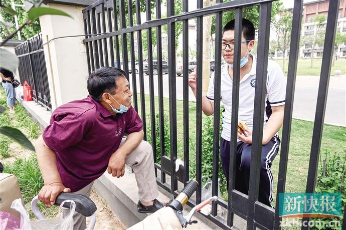 几个大饼、半斤烧肉、还有一盒牛奶,和旁边家长精心准备的午餐相比,这点东西显得有些简单。但对于老朱一家来说已经算是一种犒劳了。学校已经开始复课,对学生进行封闭式的管理。每天中午十二点,老朱都做好饭菜送到阅阳的学校,隔着围墙的栅栏看着他吃,一边询问复习的情况。