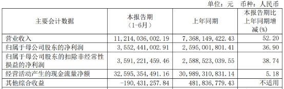 中国经济网北京9月7日讯 8月29日,中国银河(601881.SH)发布了2020年半年度报告。今年上半年,中国银河实现营业收入112.14亿元,同比增长52.20%;实现归属于母公司股东的净利润35.52亿元,同比增长36.90%;实现归属于母公司股东的扣除非经常性损益的净利润35.91亿元,同比增长38.74%;经营活动产生的现金流量净额325.95亿元,同比增长5.18%。