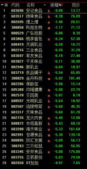 机构抱团的大消费板块继续遭资金抛弃,海天味业已经三天跌去20%,而其他食品消费股今天继续大跌。