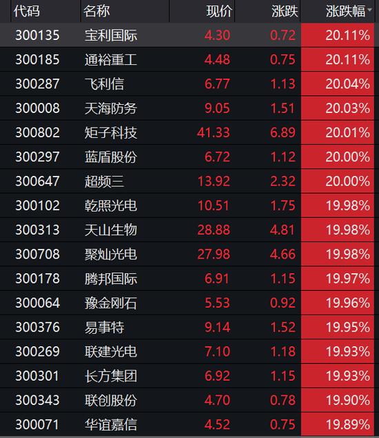 创业板近40只个股涨超10%,17只收涨停,其中12只是10元以下的,9只是7元以下的。剔除退市中的千机退,创业板已经没有低于4元的票。