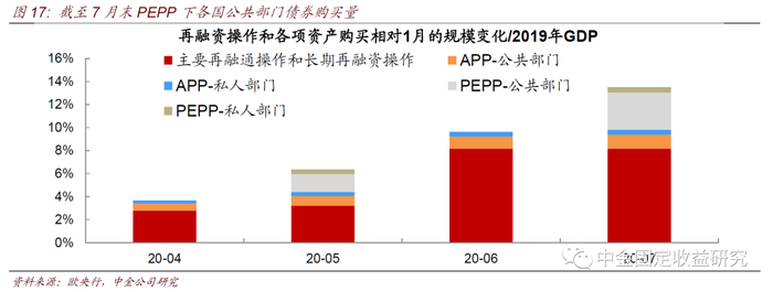 PEPP与APP下的净购买额分开,APP下的净购买将继续以每月200亿欧元的速度进行,以及到2020年底将增加额外的1200亿欧元的临时购债。相较APP,PEPP的设计方式灵活,可以有针对性地处理疫情期间的的特殊情况。截止8月28日,PEPP下购债总额为4979.11亿欧元。