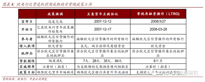 08年次贷危机前欧央行主要通过公开市场来调节流动性,次贷危机后欧央行货币政策进入新阶段,引入了一系列非常规货币政策工具,例如长期再融资操作、资产购买计划、证券市场计划和直接货币交易计划、负利率等。