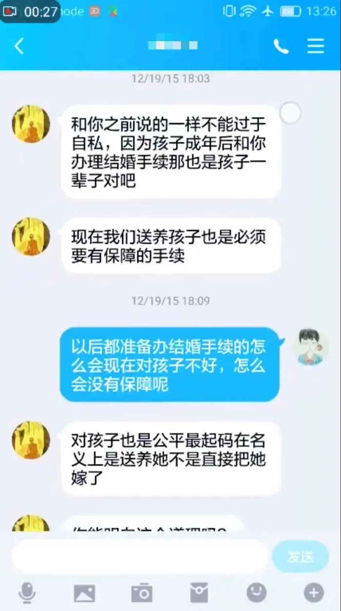 韩某母亲对鲍毓明说:“因为孩子成年后和你办理结婚手续,那也是孩子一辈子。现在我们送养孩子,也是必须要有保障的手续。”