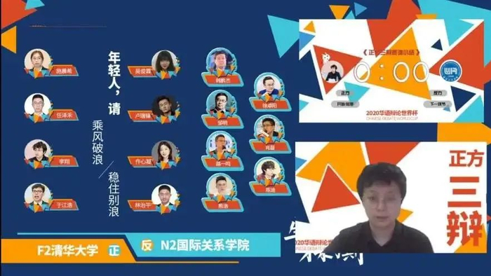 本次比赛在线上举行。决赛辩题为“年轻人,请乘风破浪/稳住别浪”。清华持正方,即”年轻人,请乘风破浪“。
