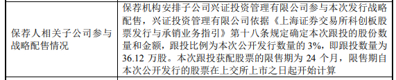 据福昕软件上市发行结果公告显示,福昕软件跟投机构为兴证投资管理有限公司,最终战略配售数量为36.12万股,跟投金额为8615.70万元,占发行总量的3%,限售期为24个月。