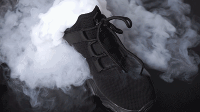 小编花了大力气搞来一些干冰,可以看到整个鞋面都是“咣咣”透气的!