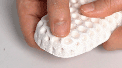 这里是采用了素湃特别搭配的发泡爆米花鞋垫的缘故。