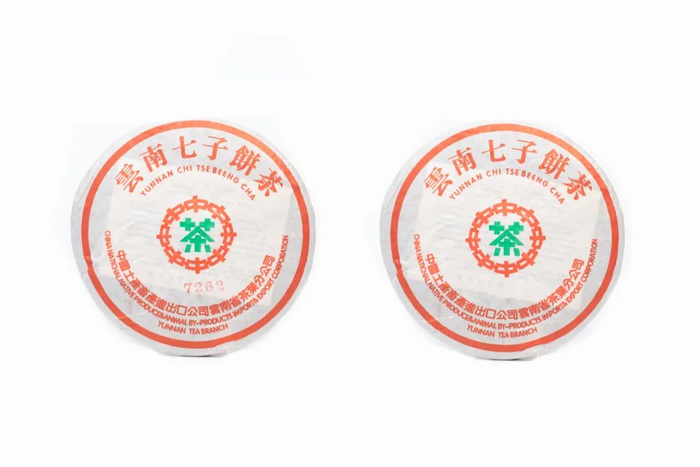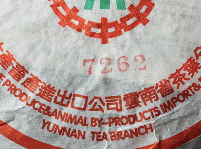 1976年,中国土产畜产云南茶叶进出口公司对普洱茶进行了编号,又称“唛号“,规范了当时生产的普洱茶配方工艺、茶菁等级、所属茶厂等,以便出口和消费者辨识。但是7262,是极少数不以研发年份为配方的唛号茶。“7”,是为了纪念熟茶发酵工艺在上世纪70年代研制成功;“2”,指茶面的级别;“6”指里茶的级别;最后一位数字“2”,指当年中茶品牌旗下勐海老茶厂的代号。