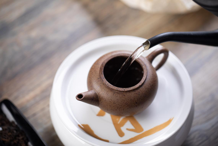 沸水从壶口上方,低位慢冲注入沸水,高温洗茶2次,整个过程不用着急,可以多洗一会。