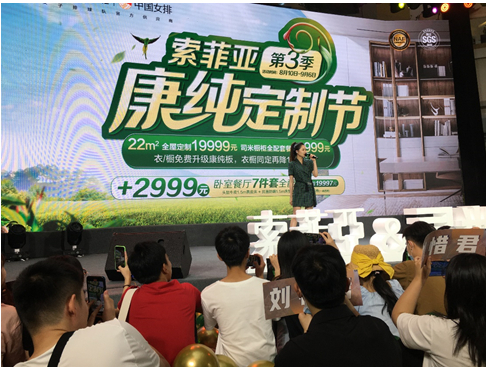 8月第三季康纯定制节期间,索菲亚携手奥运冠军陈一冰、惠若琪、何冲、郭跃,娱乐明星金莎、江映蓉、安又琪、刘惜君等康纯推荐官在全国各地强势为索菲亚康纯定制节站台发声。
