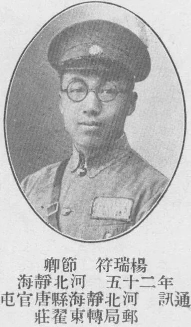 他的名字叫杨瑞符,原籍天津静海,从静海离家、弃商从军后,于1935年升任国民革命军陆军第88师262旅524团第一营少校营长,直至1937年四行仓库保卫战以营长身份,与团附谢晋元一同带领“八百壮士”固守四行仓库,抵御外寇,一战成名。