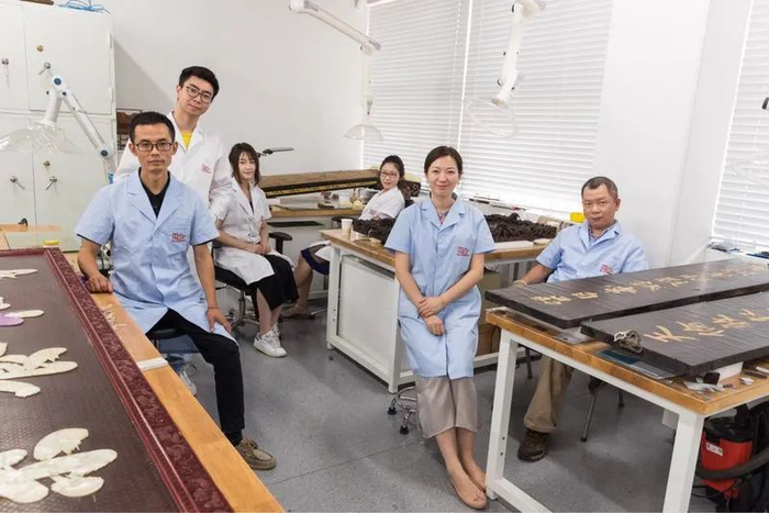 在漆器修护工作中,每个人会根据知识背景和学习经历,去朝专业方向培养。他们有着各自擅长的领域。