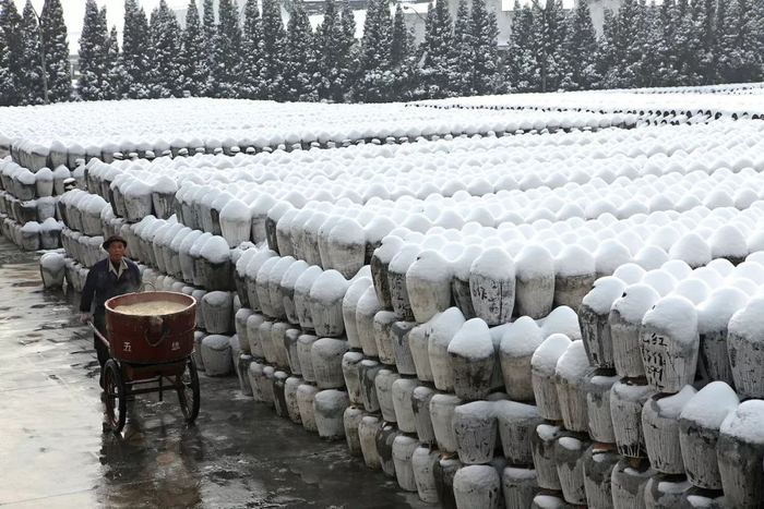 绍兴人酿酒,严格遵循顺应天时:夏做酒药、秋制麦曲、立冬开酿、春分封坛。