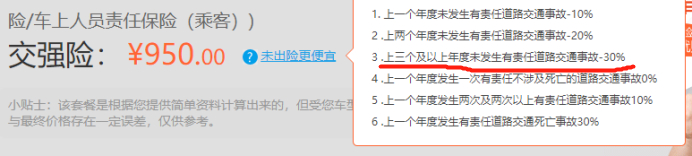 环球网记者查询发现,就交强险保费优惠这一项,目前还是按照3年不出险,保费最高优惠30%来计算的。