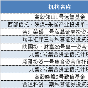 “陕国投•财富28号单一资金信托”持有兆易创新(603986.SH)49.81亿元;“九智1号”和“九智2号”分别持有比亚迪(002594.SZ)46.25亿元和26.38亿元;“添盈投资一号”持有雅戈尔(600177.SH)33.88亿元;“合道科创一期”持有用友网络(600588.SH)25.12亿元。