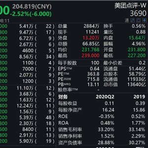 值得一提的是,9月9日,美团点评下跌2.52%,收于232.00元每股。