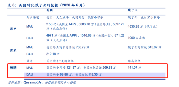 截至2020年6月,美团骑手月活121.87万;美团众包月活269.83万;蜂鸟众包141.07万。