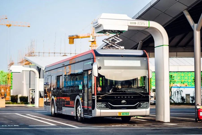 正在自动充电的U12智能网联无人驾驶公交车