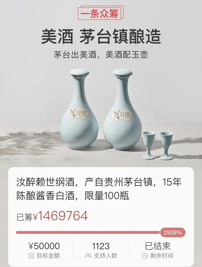 今年6月,一条生活馆便曾与赖家茅酒第四代传人赖世纲,以“汝醉”之名发起了一次众筹。