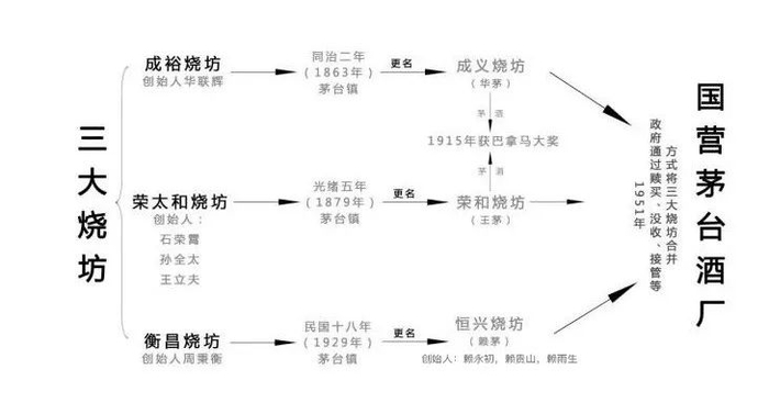 这三家烧酒坊分别是:成义、荣和、恒兴,也就是大家常说的:华茅、王茅、赖茅(三家烧酒坊创始人的姓氏)。