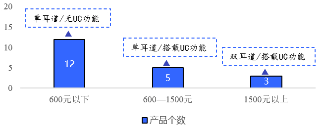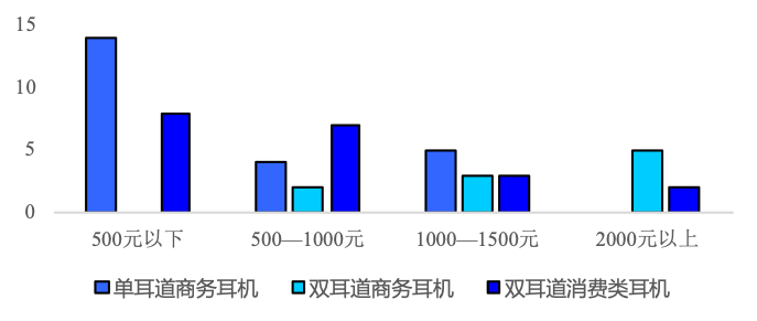 图:除单耳道商务耳机价格较低,双耳道商务耳机与消费耳机价格差异不显著
