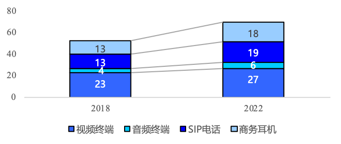 依托UC平台发展,商务耳机市场2022年市场规模预计达到18亿美元。未来拉动商务耳机市场增长主要有两大驱动点:1)新增UC平台客户带来UC耳机的需求,用户为了与UC平台获得更好的协作体验将会把未搭载UC功能的耳机更新为UC耳机,带来增量需求2)渗透率提升带来的采购需求,耳机对桌面电话的配套率目前仅有4-5%,而未来耳机对统一通信设备的配套率将接近100%。