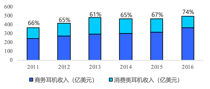 图:缤特力营收增长主要依靠商务耳机驱动(单位:亿美元)