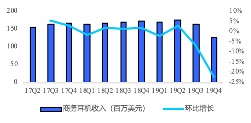数据来源:缤特力财报,国泰君安证券研究 注:2019年四季度以后公司不再对商务耳机收入单独披露