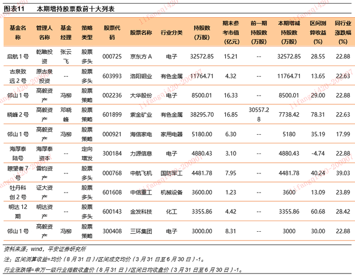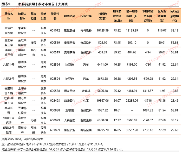 2) 通过上市公司披露的前十大股东信息倒推出部分私募的持股情况并不能代表私募整体持股情况,仅可作为部分参考。