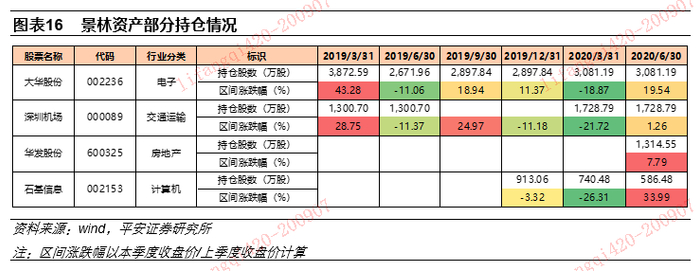 景林资产旗下产品出现在个股前十大股东中的数量较少,本期仅有4只个股股东中出现了景林的身影。以期末股价进行测算,持股的参考市值约为10.46亿元,持股数约为0.67亿股。