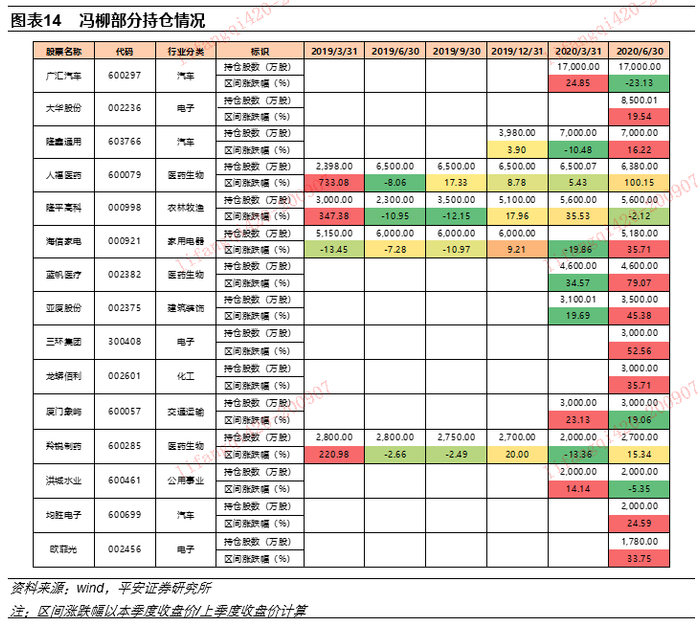 高毅旗下明星基金经理冯柳部分持仓情况如下,以基金首次出现在个股前十大股东明细的时间至8月末测算个股区间涨跌幅,不考虑区间增减仓的情况,可以看到除新加入的广汇汽车、均胜电子,其他个股区间涨跌幅均为正。
