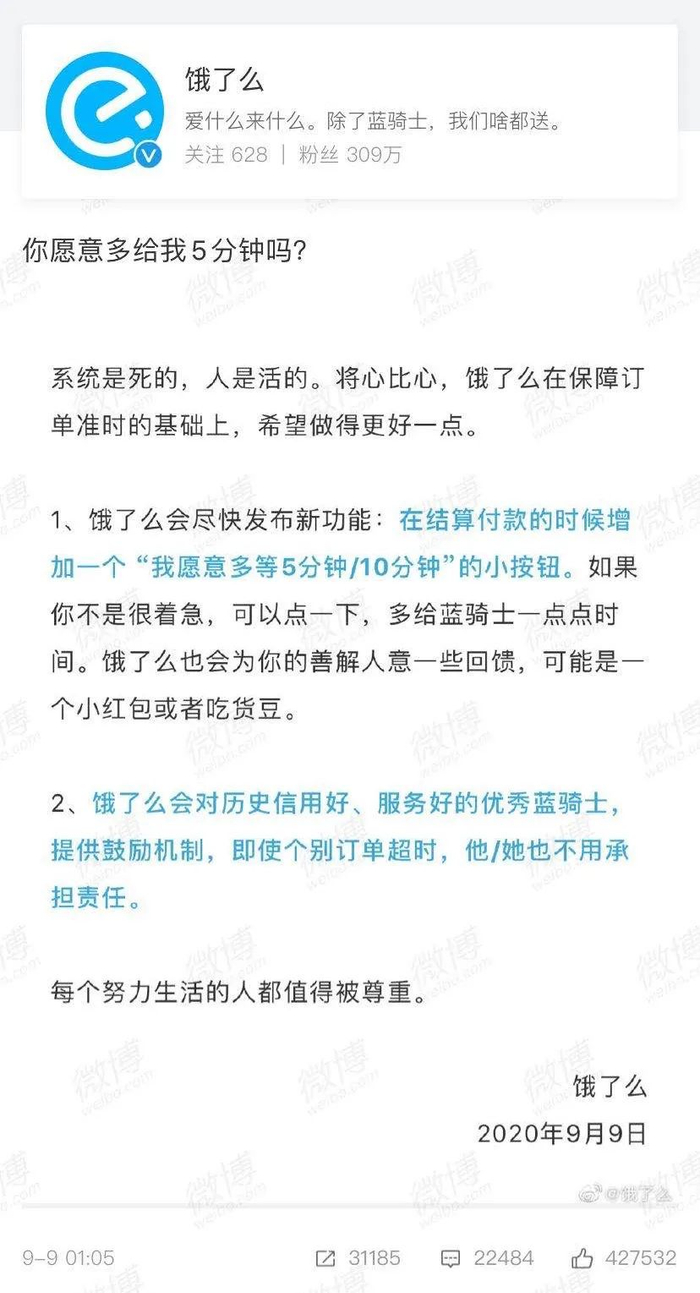 饿了么凌晨发公告,多等5分钟新功能引热议
