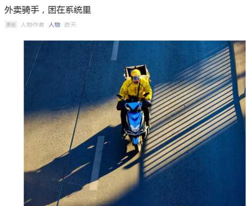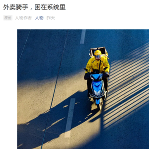 在网络热传的《人物》杂志文章《外卖骑手,困在系统里》里,外卖骑手是被平台系统算法与数据支配的“工具人”,根本没有选择的余地。