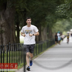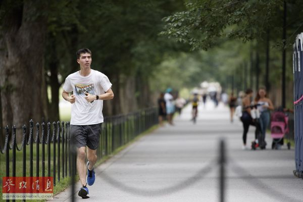 资料图片:2020年6月28日,一名男子在美国华盛顿国家广场跑步。 (图片来源:彩色通稿)