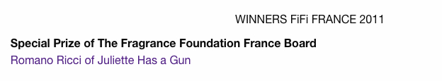 法国香水基金会还在2011年,在被誉为“香水界奥斯卡”的Fifi Awards大会上授予了Romano Ricci超高荣誉。