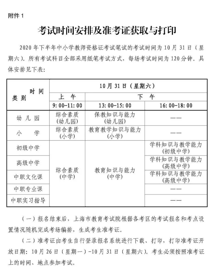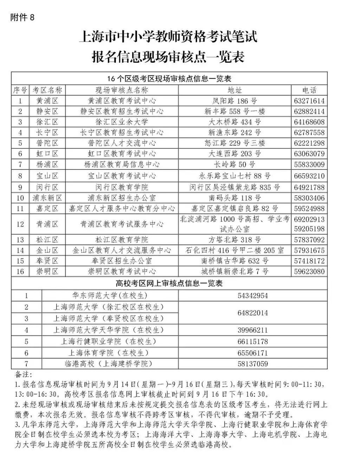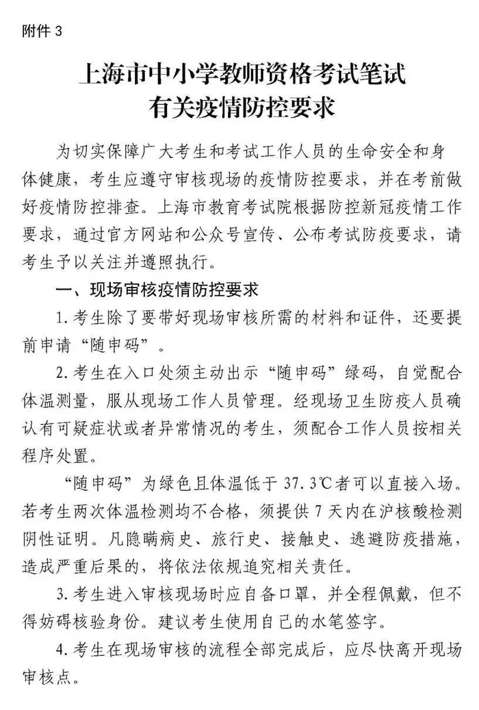 特别提醒:为保障考生健康安全,请考生遵守现场审核疫情防控要求,具体见:上海市中小学教师资格考试笔试有关疫情防控要求。