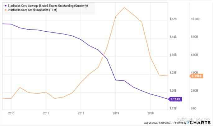 星巴克在过去几年里进行了大量的股票回购。股票回购有助于减少未来所需的股息总额。