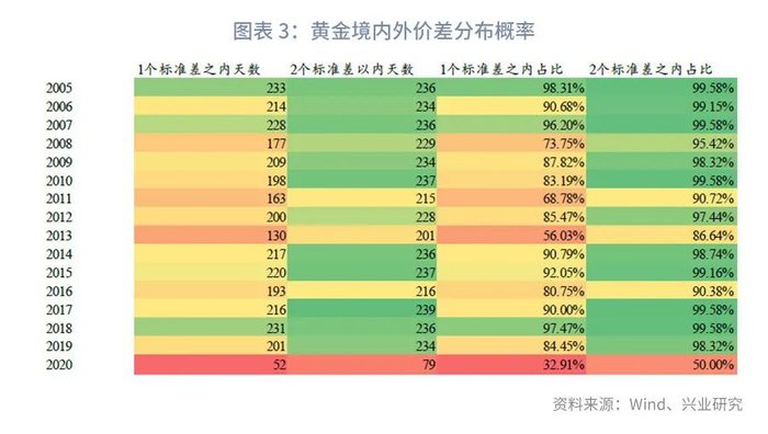 一、黄金境内外价差的统计规律
