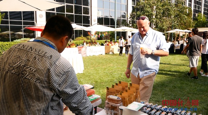 图为摊位旁的外国顾客(经济日报-中国经济网 李凡摄)