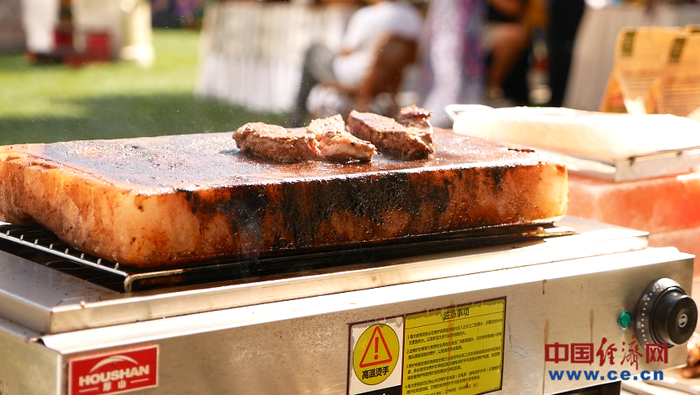 显然,于海明很清楚外国客人的兴趣点,那中国客人对什么感兴趣?于海明说,中国人喜欢中国没有的,就像今天摊位上用厚盐板来烤牛排,路过的人觉得新奇,都会停下来看看。
