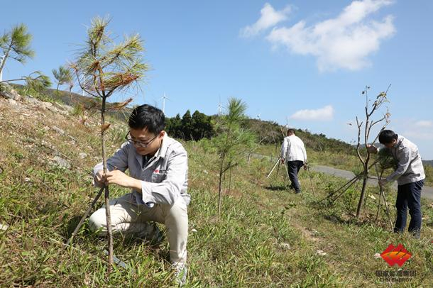 绿色生态的理念也早已植入每位宁波风电人的心中,他们曾利用节假日,上至公司领导,下至普通员工,几十个人从早干到晚,傍晚的山顶寒风凛冽,雨水和汗水浸透了所有人的衣衫,大家万众一心、众志成城,渴了就喝口自带的姜茶,饿了就拿块饼干填填肚子,两天后,2000颗湿地松组成了东海云顶的一抹“新绿”。