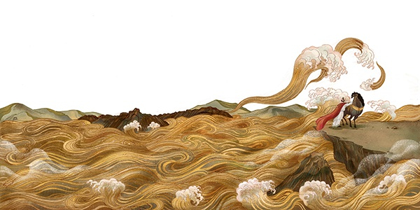 《木兰辞》在南北朝之后的一千多年有过很多的演变,其中不变的应该是雌雄兔子的比喻。我在绘本中加入了两只兔子和一只凤凰,作为木兰的陪伴和精神力量的外化,也算增添了一些灵动与可爱。